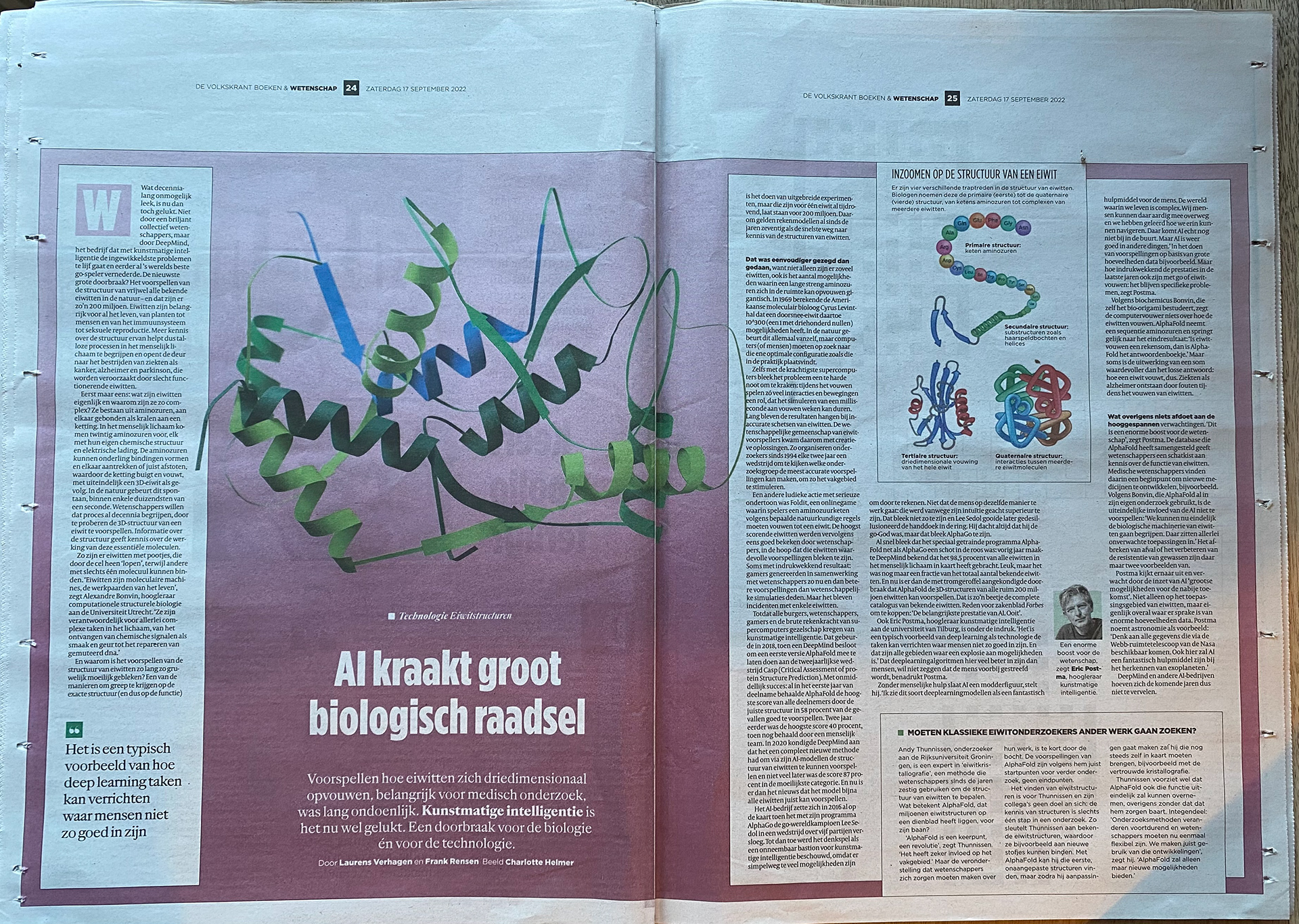 The article 'AI cracks big biological riddle' (in dutch: AI kraakt groot biologisch raadsel), with terms like bio-origamy and protein folding fit my alter ego Papernerd perfectly.