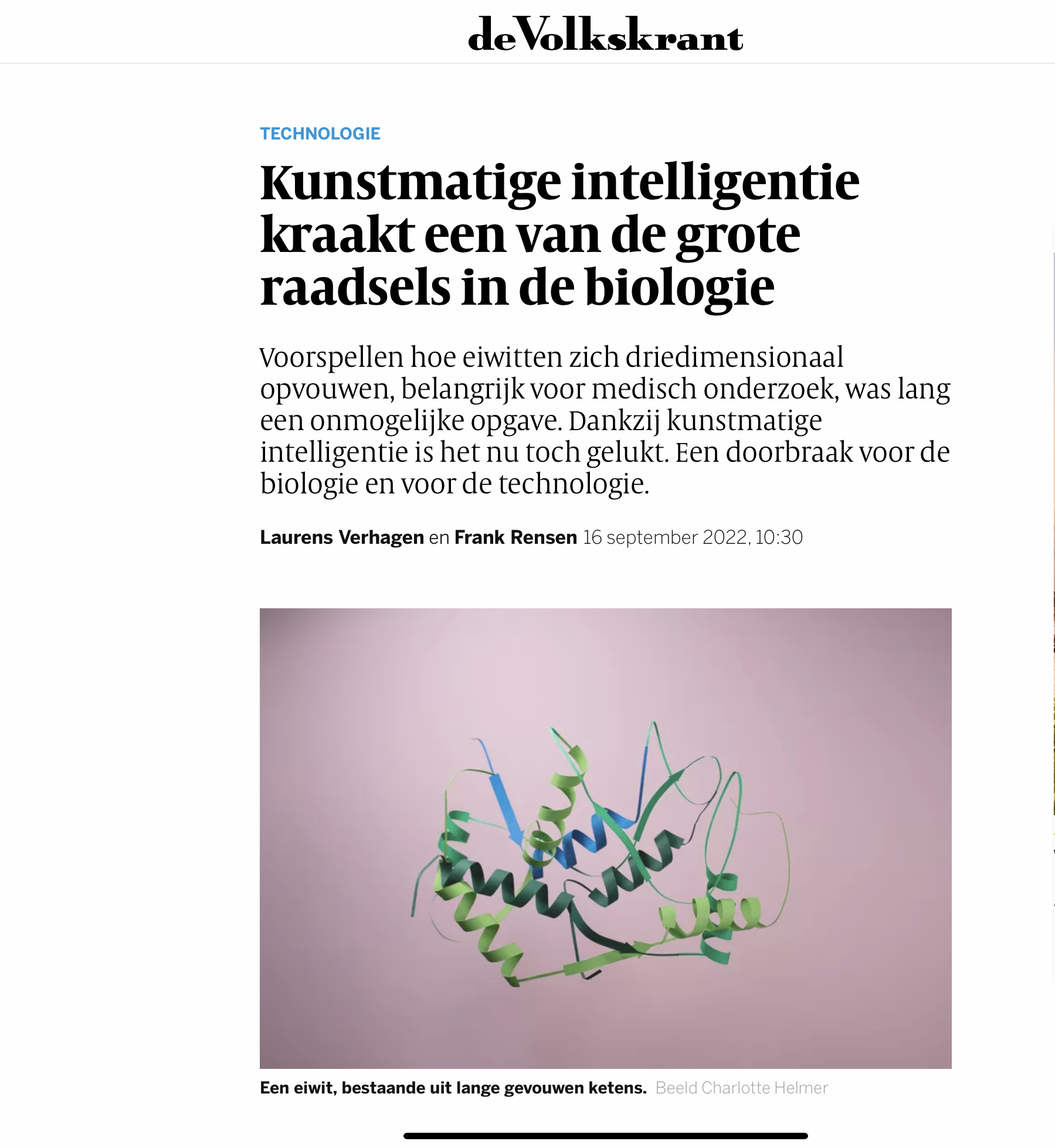 De Volkskrant 'AI cracks big biological riddle'