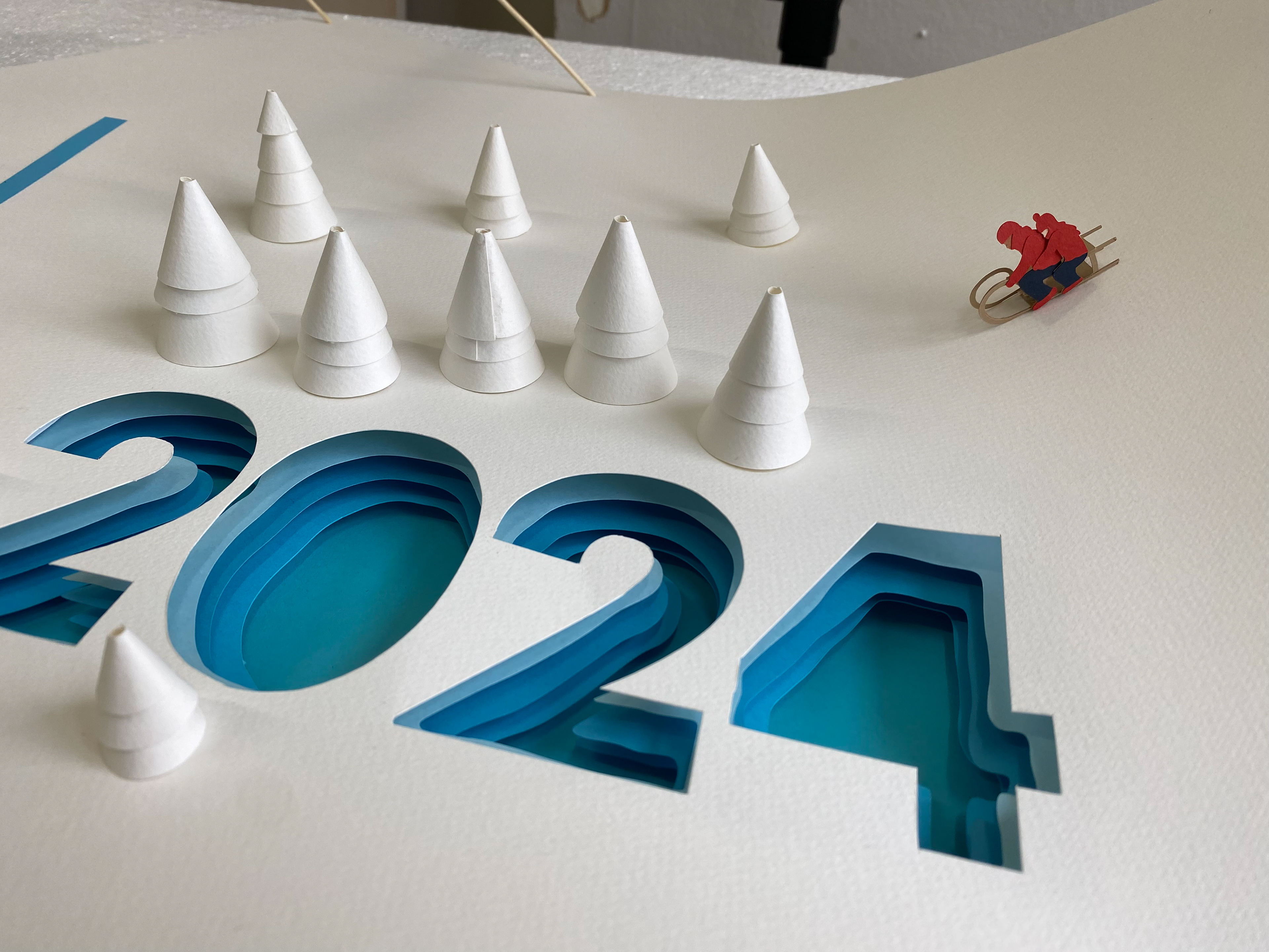 New Year's greeting for 2024. Super nice project with Jochem Van der Heide. I designed the set and made it all from paper. Some behind-the-scene footage: see below.