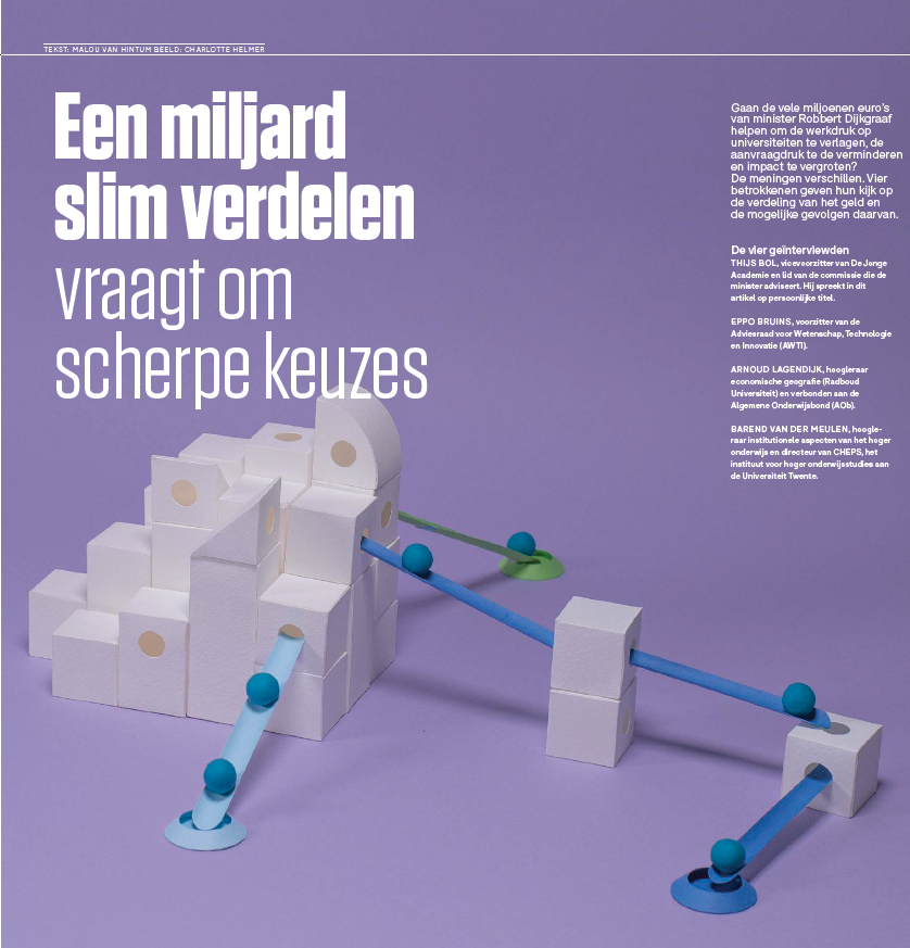 For the NWO's Dutch magazine 'Onderzoek', I was asked to create 6 illustrations for an issue on the NWO's funding system. What a feast to make. A delightful assignment: illustration 2.
