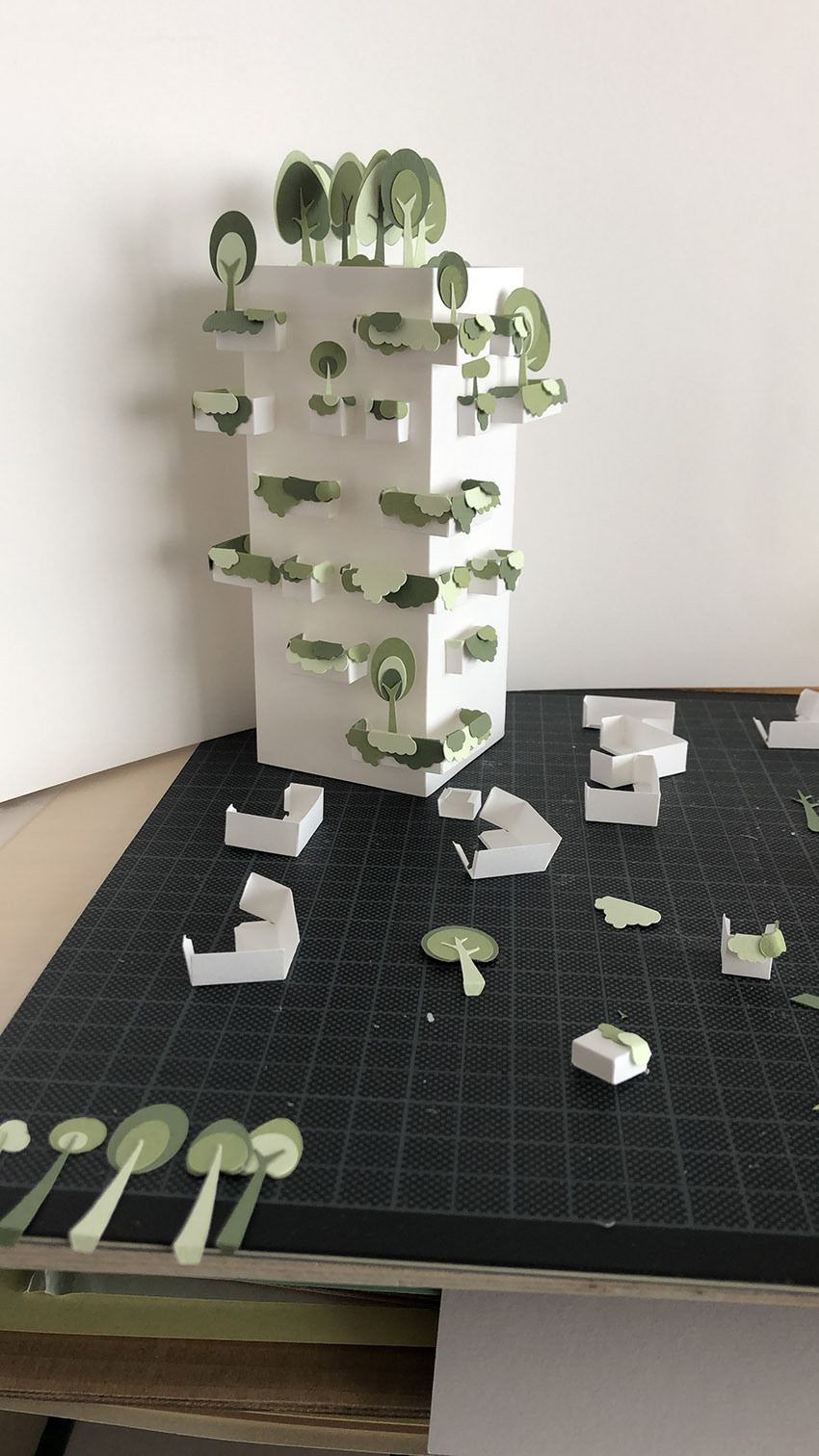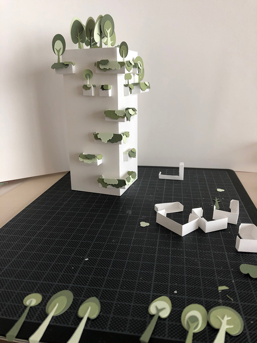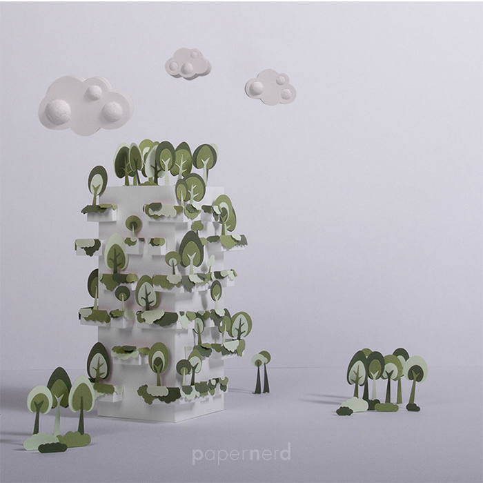 Thursday 26th of August 2019, the hottest day ever in The Netherlands 40,7 °C (104 °F). The earth is warming up and that's no secret anymore. Especially in cities there will be a problem if it goes on like this, therefore people need to create more green areas and less concrete. Verticale forest is one option... inspired by the heat a new paper made illustration.